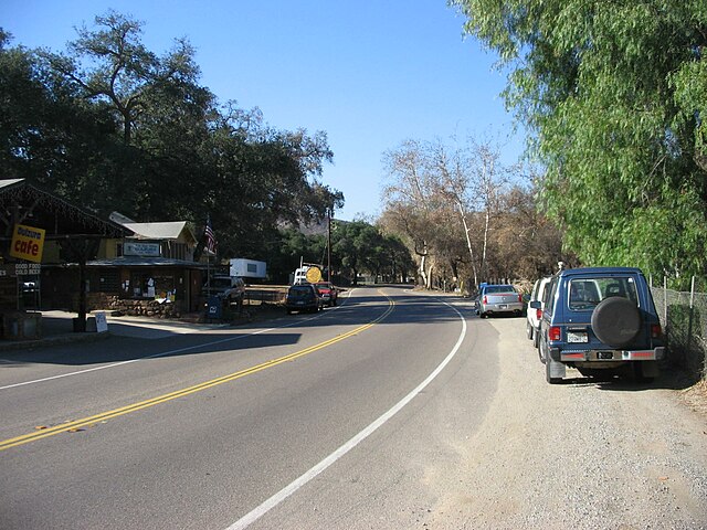 After Cameron Corners, the bus slowly rattles east along CA-94, passing a whole lot of nothing — not even farmland, just chapparal and trees. Then comes Live Oak Springs, a blink-and-you’ll-miss-it mountain village: a gas station, a restaurant, a few homes tucked among the trees. It’s hard to imagine anyone getting on or off here — and maybe no one does. Still, the bus shows up… twice a week.
